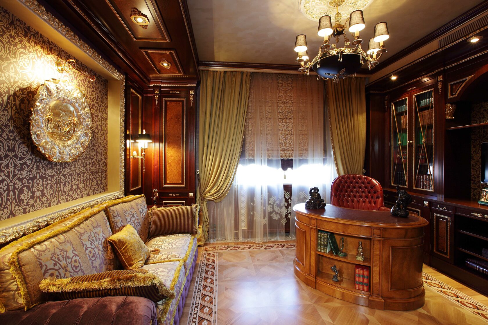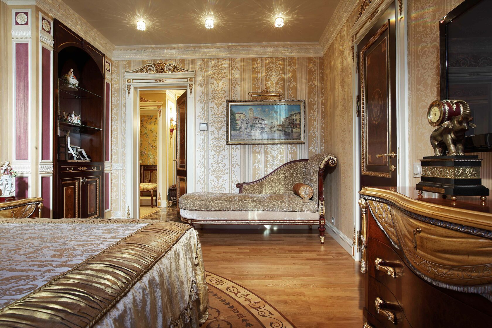 Это предопределило общий стиль и настроение интерьера. При этом плотный, по - дворцовому нарядный декор соответствует представительскому статусу квартиры.
