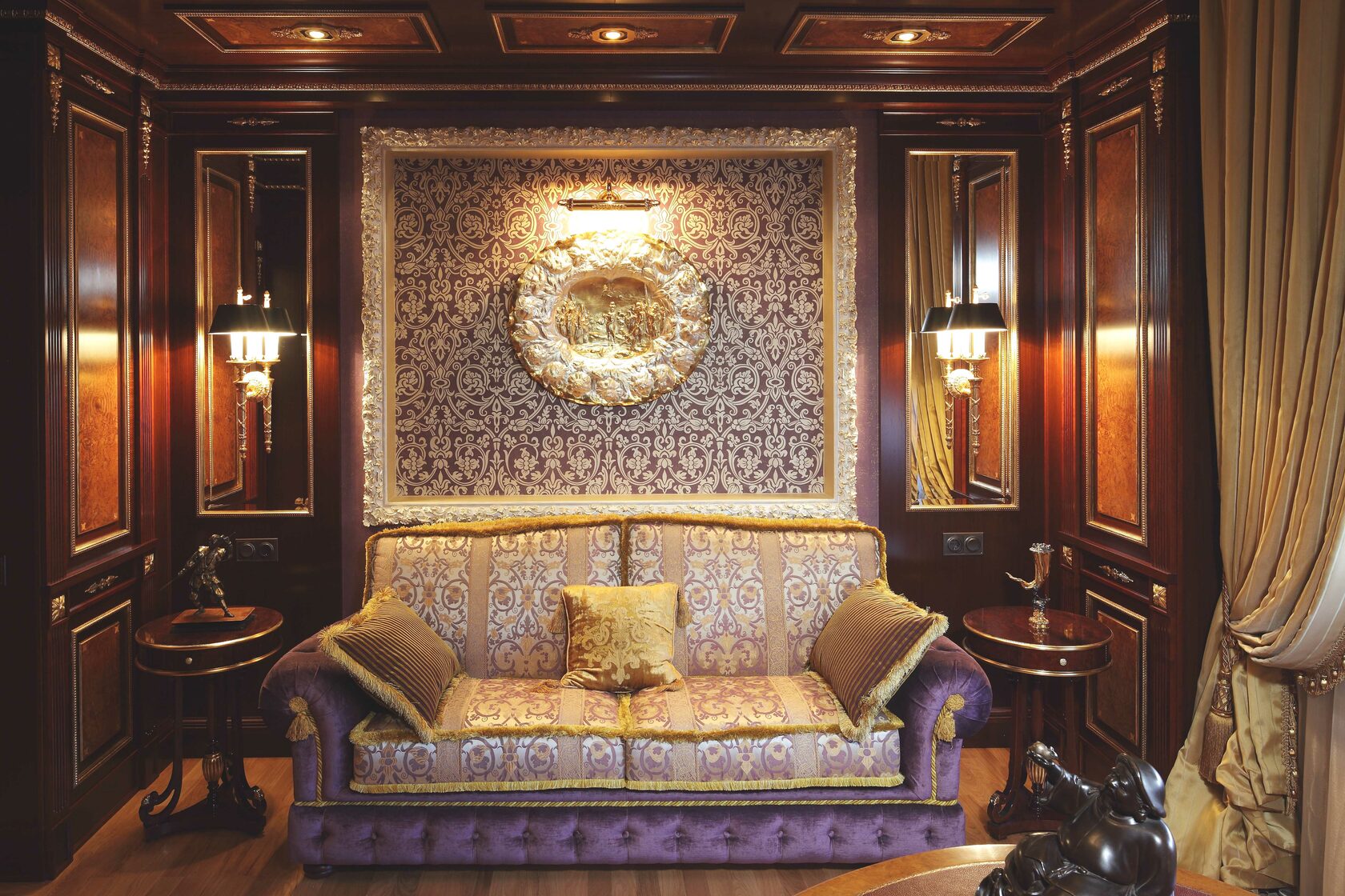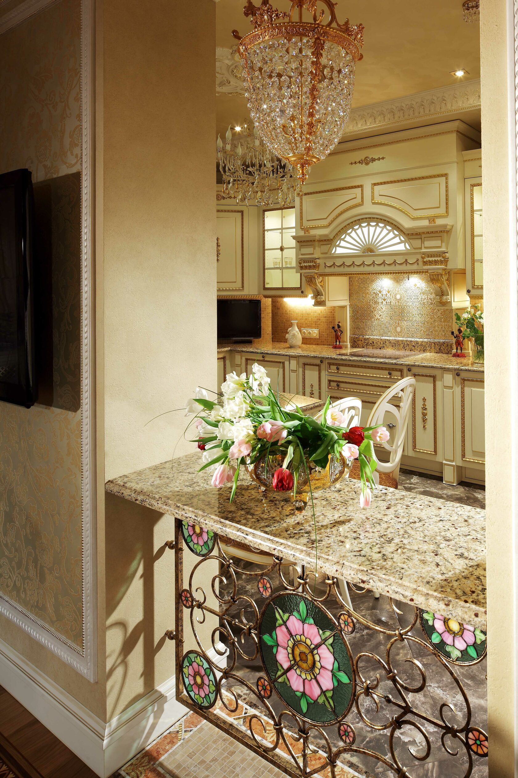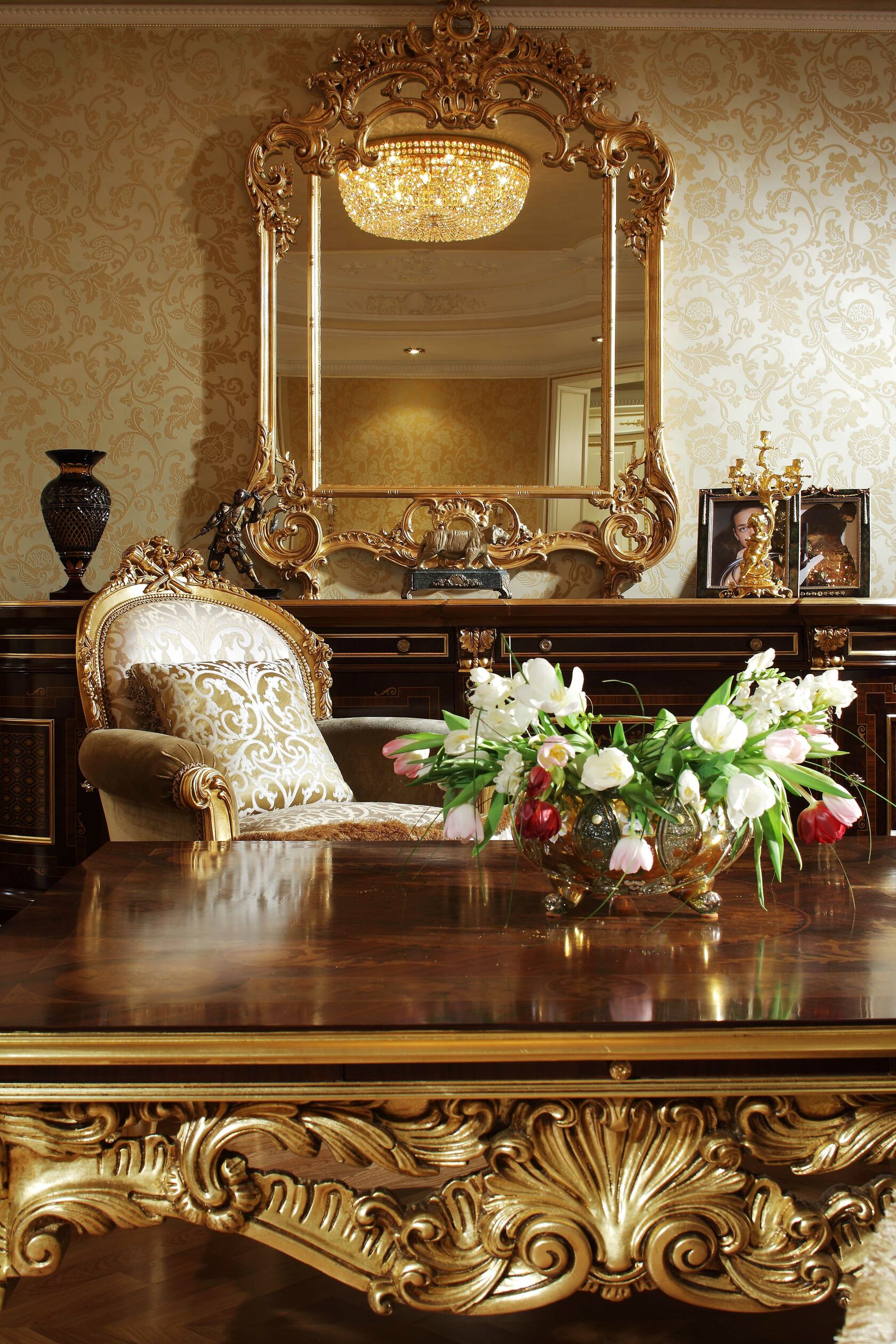 Когда мы стали подбирать мебель и разрабатывать другие детали интерьера, выяснилось, что заказчикам нравится богато декорированные классические