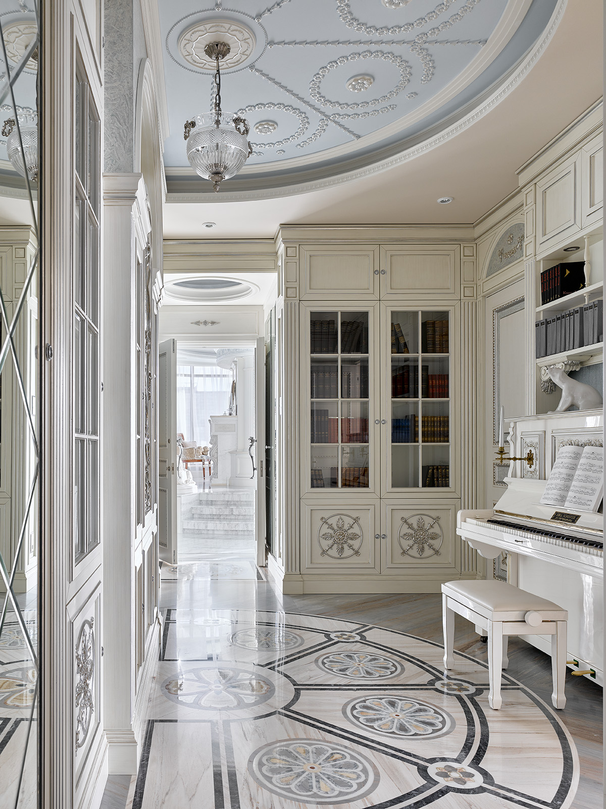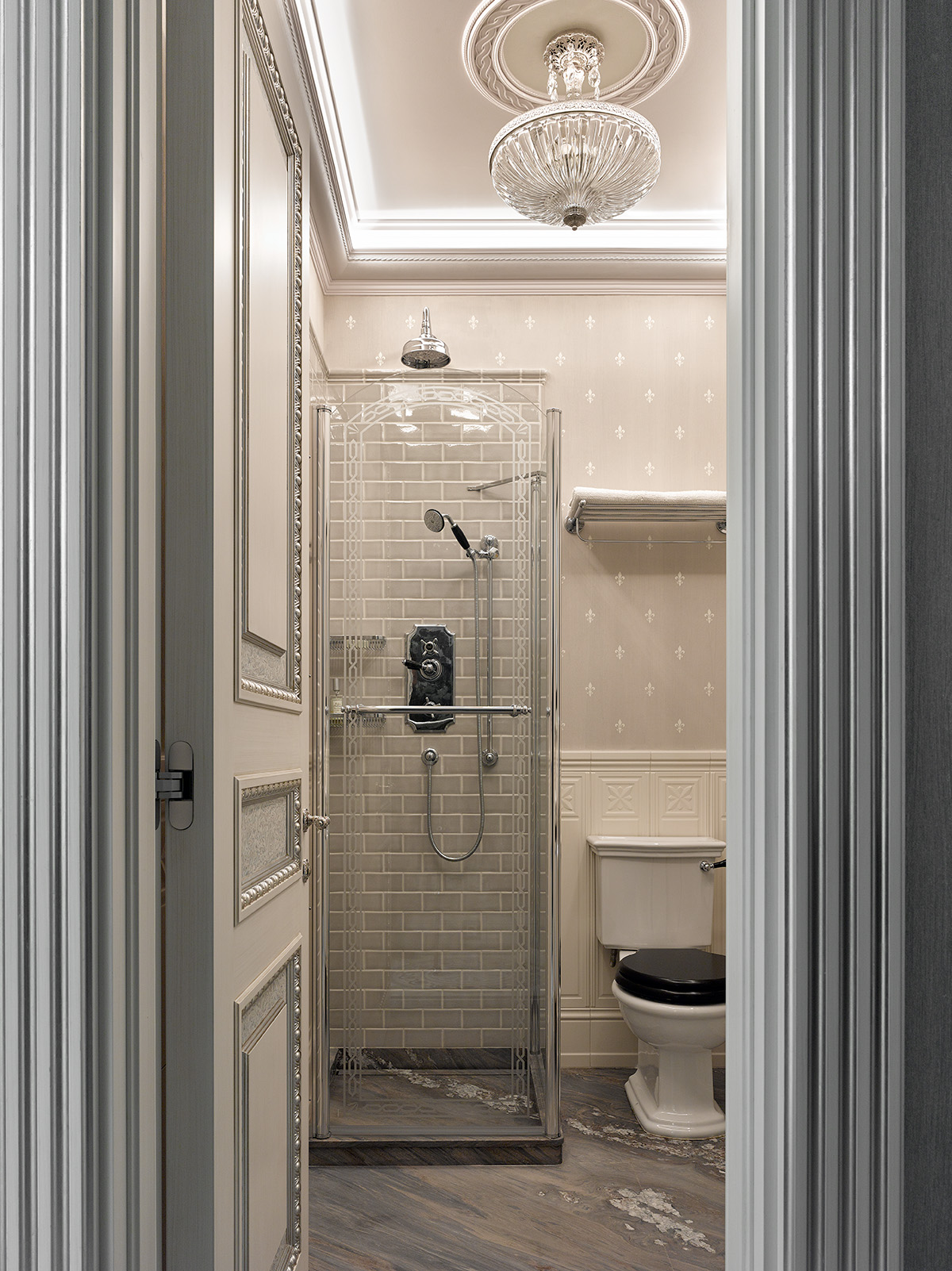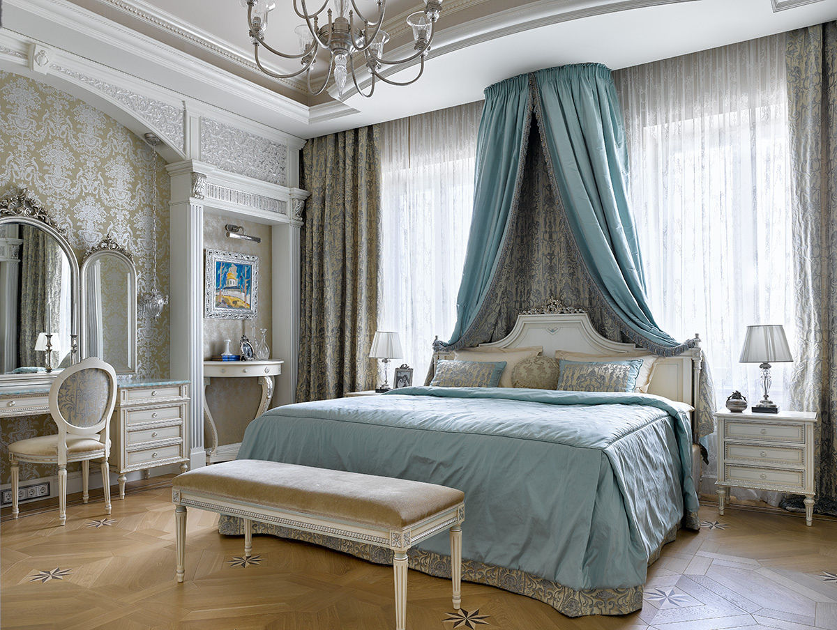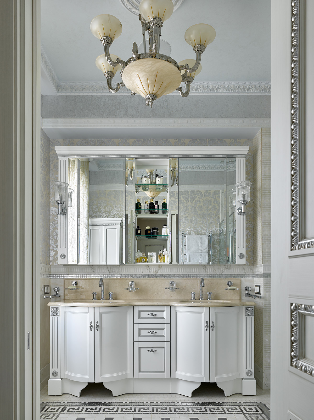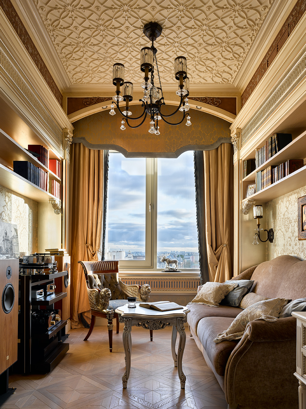 Классический стиль квартиры был выбран по двум причинам: это и имперское влияние города, и готовность заказчиков к такому интерьеру. Расположение квартиры и наличие панорамных окон дало возможность использовать в интерьерах виды города и большого открытого неба, как дополнительную декорацию. Отсюда и родилась цветовая гамма объекта - много чистых голубых тонов, нежное серебро и растворяющий границы перламутр. Также стояла задача сделать доступными все качества современного дома – он должен быть комфортным и удобным для проживания, обладать самым современным техническим наполнением.