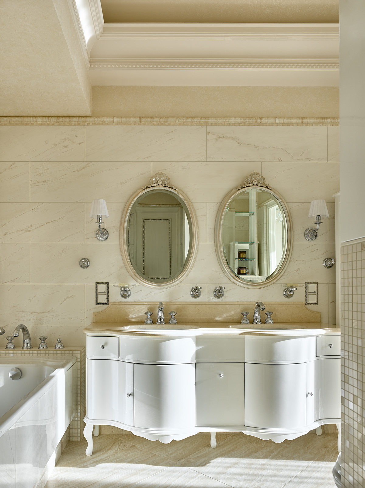 Как и на большинстве наших объектов, здесь много встроенной авторской мебели, выполненной на заказ по нашим чертежам в Москве. Использована и мебель итальянского производства с подбором отделок и тканей.