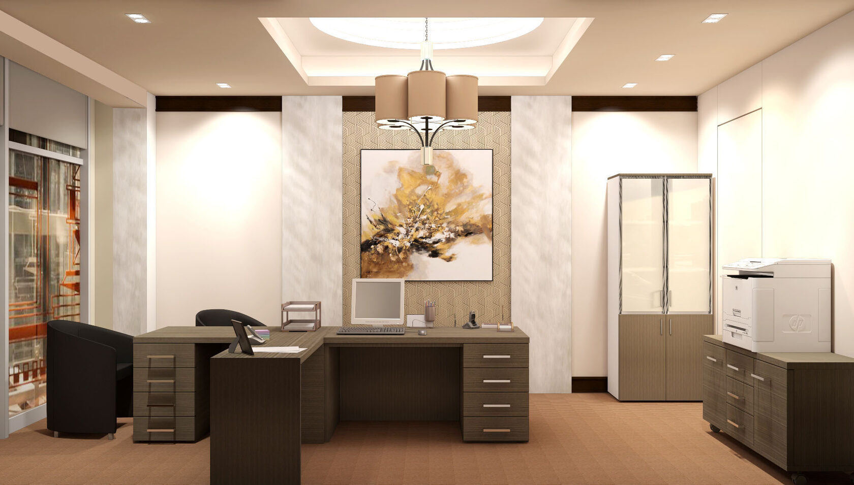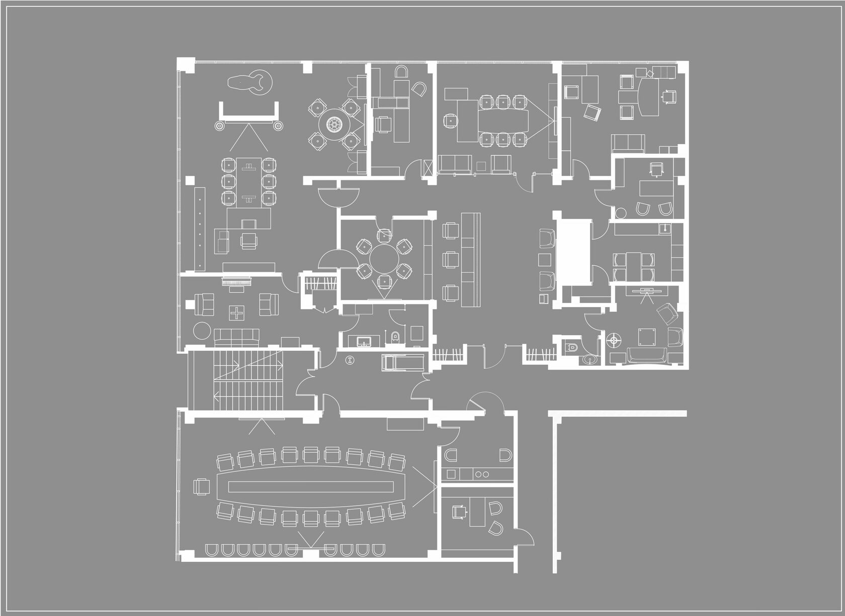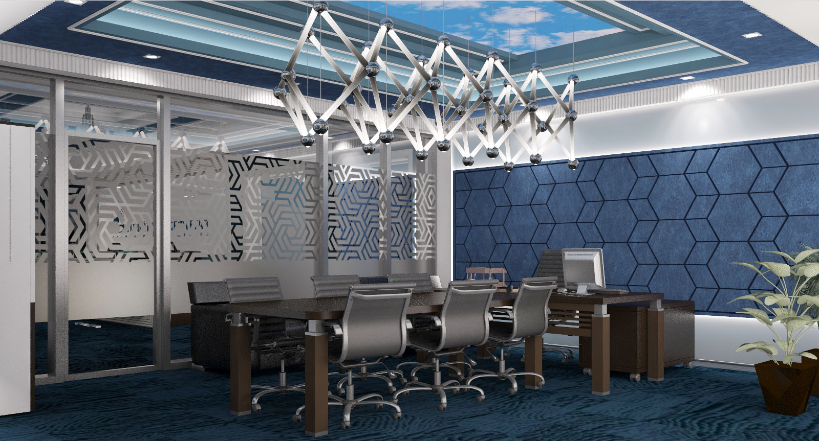 Спроектировать VIP зону офиса; особенность задания заключалась в том, что у заказчика было несколько вариантов размещения этой зоны относительно всего занимаемого офисом пространства и нужно было рассмотреть сильные и слабые стороны каждого из них.