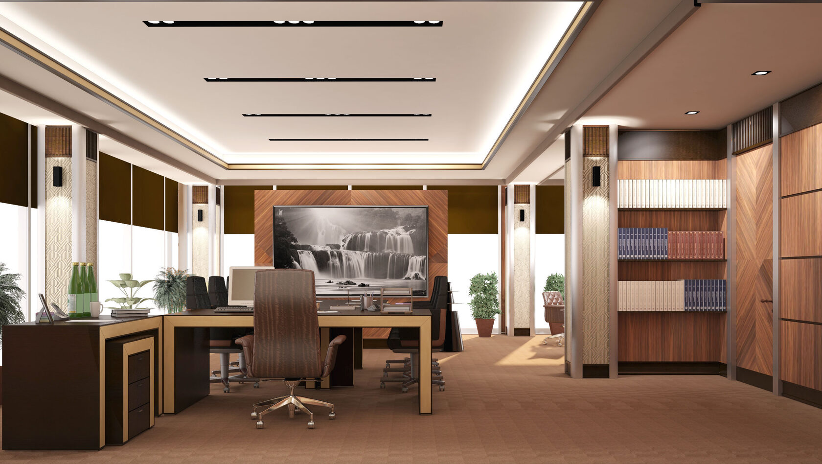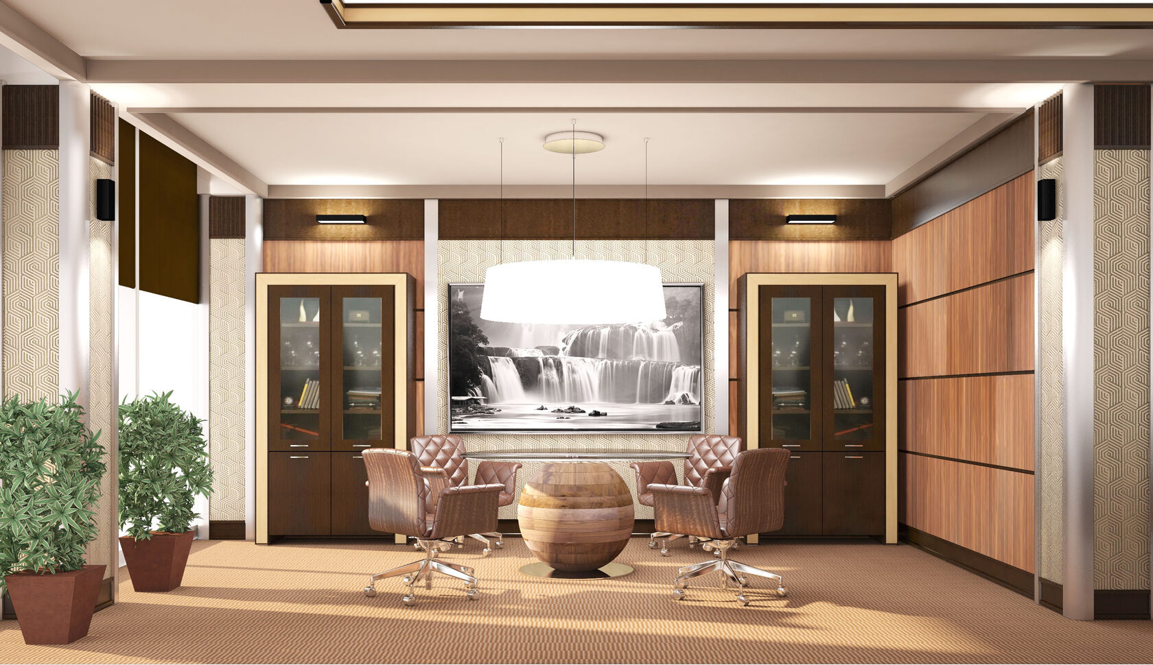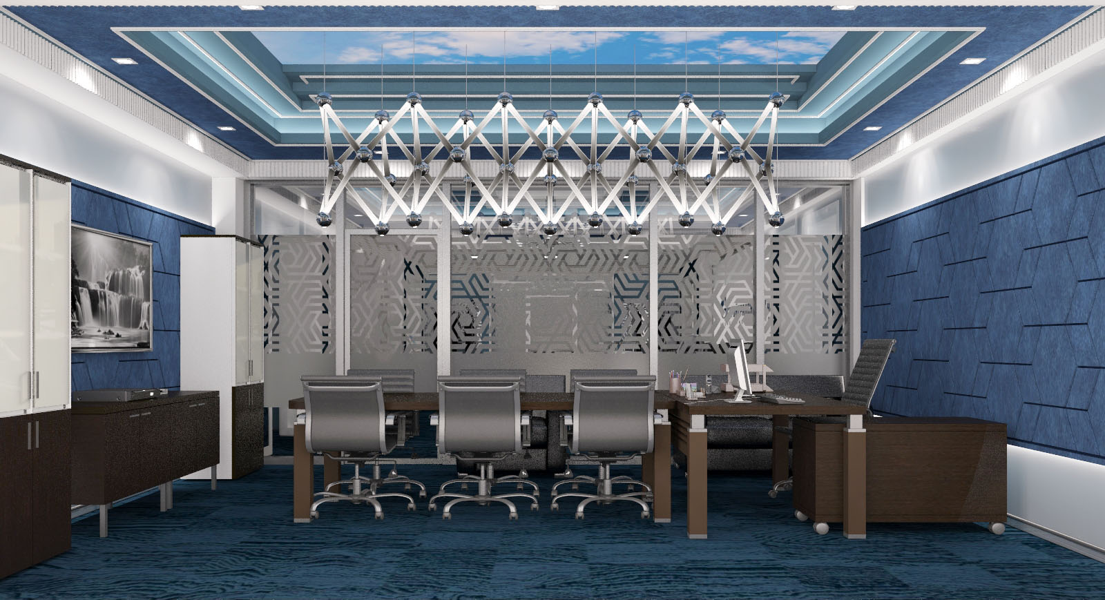 Спроектировать VIP зону офиса; особенность задания заключалась в том, что у заказчика было несколько вариантов размещения этой зоны относительно всего занимаемого офисом пространства и нужно было рассмотреть сильные и слабые стороны каждого из них.