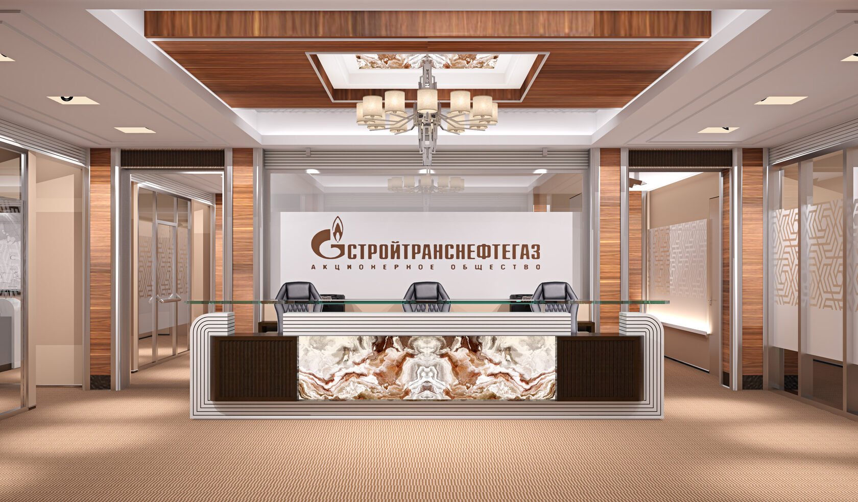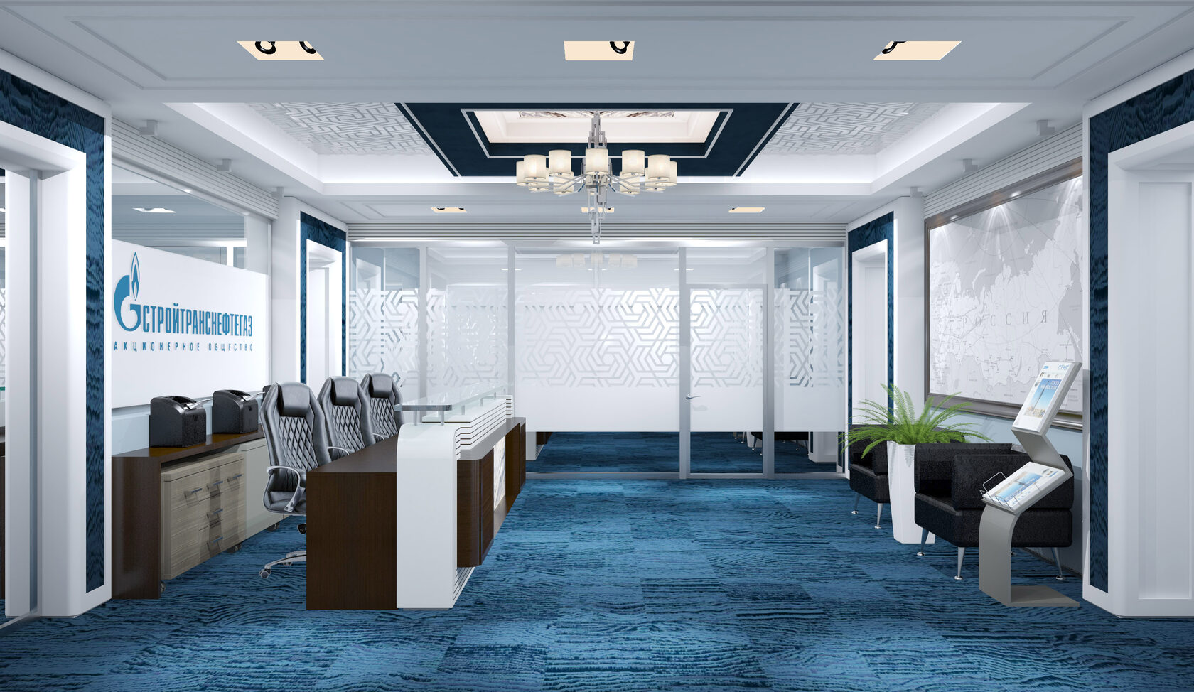 Мы сделали несколько эскизных предложения по обоим вариантам , на основании чего заказчик остановился на самом удобном и выигрышном, после чего выбрал, собственно, этаж и само помещение. Потом процесс опять пошел по двум параллельным направлениям- выбор приоритетных цветов и отделок, которые бы стали фирменным цветом. Для этого создавались 3D модели основных помещений. Работа по архитектурному проектированию и устройству сложной инженерной системы велись параллельно, чтобы быстро начать строительство.